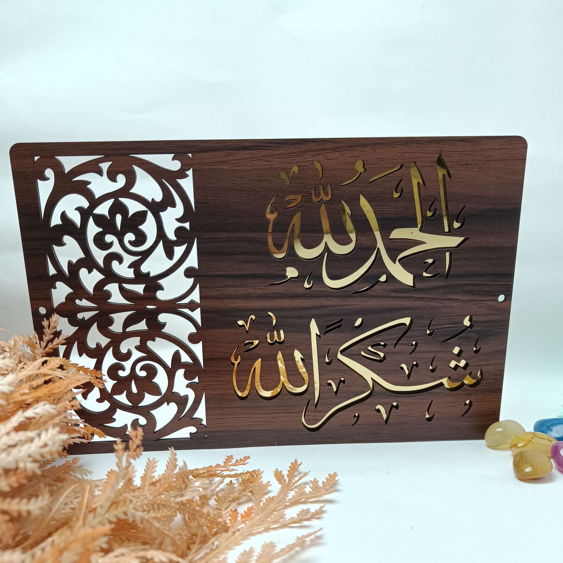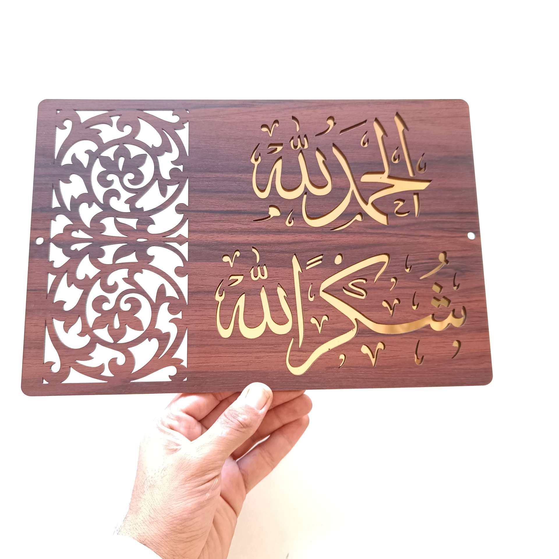 Saifee Burhani art presents alhamdulillah Shukranlillah Religious Frame with golden and brown wall hanging frame for house,home and any shops. It’s made of fine and sharp quality wooden and mdf and featuring gold finish and attractive design, it will surely catch many eye balls. It will blend in with any type of home decor. A beautiful wall hanging frame made with laser cut process product will be a frame that could speak a thousand words they say.