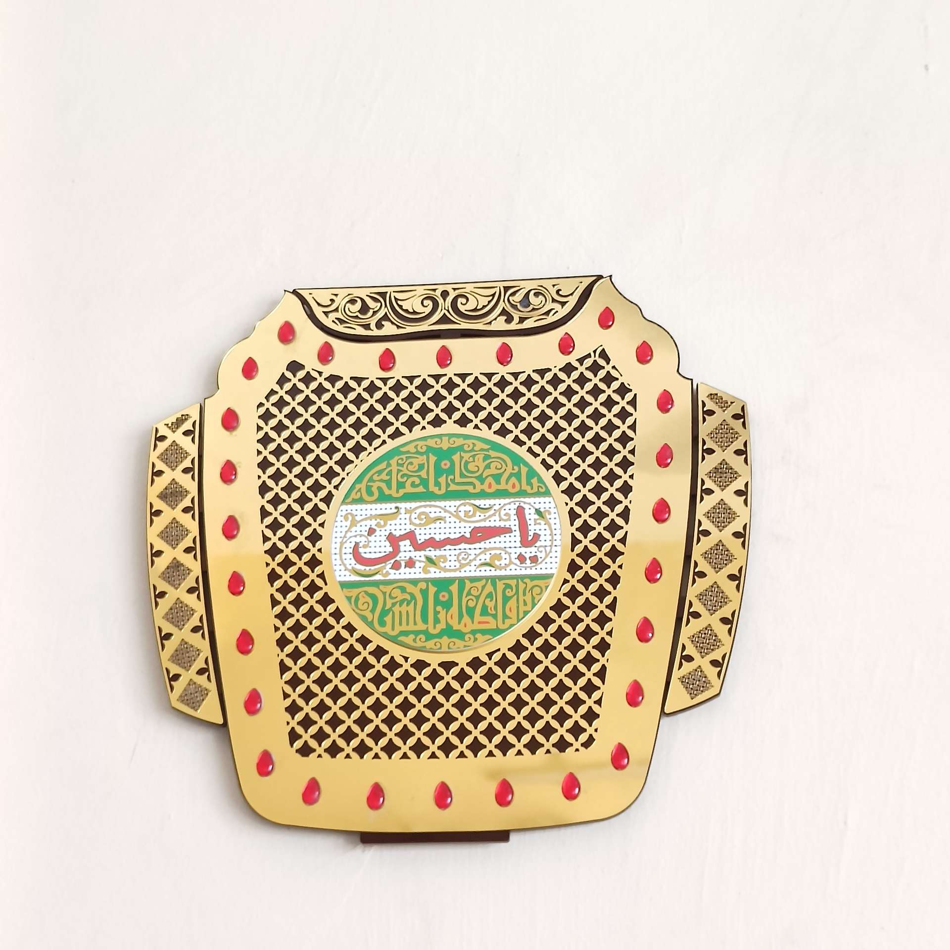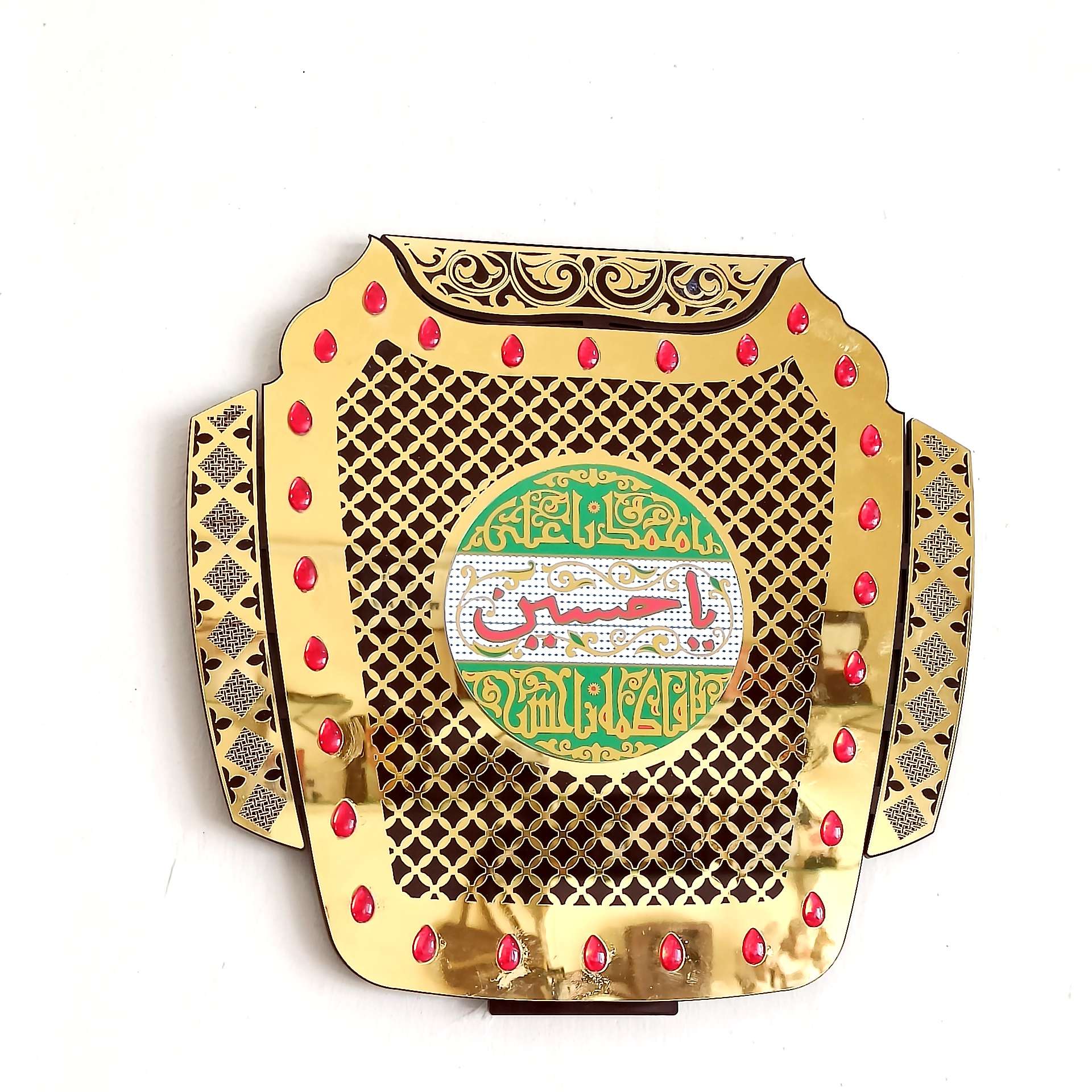 This frames for perfect wall decoration this beautiful product is made of Acrylic having holy name of allah muhammad ali fatema hasan husain laser cut process.