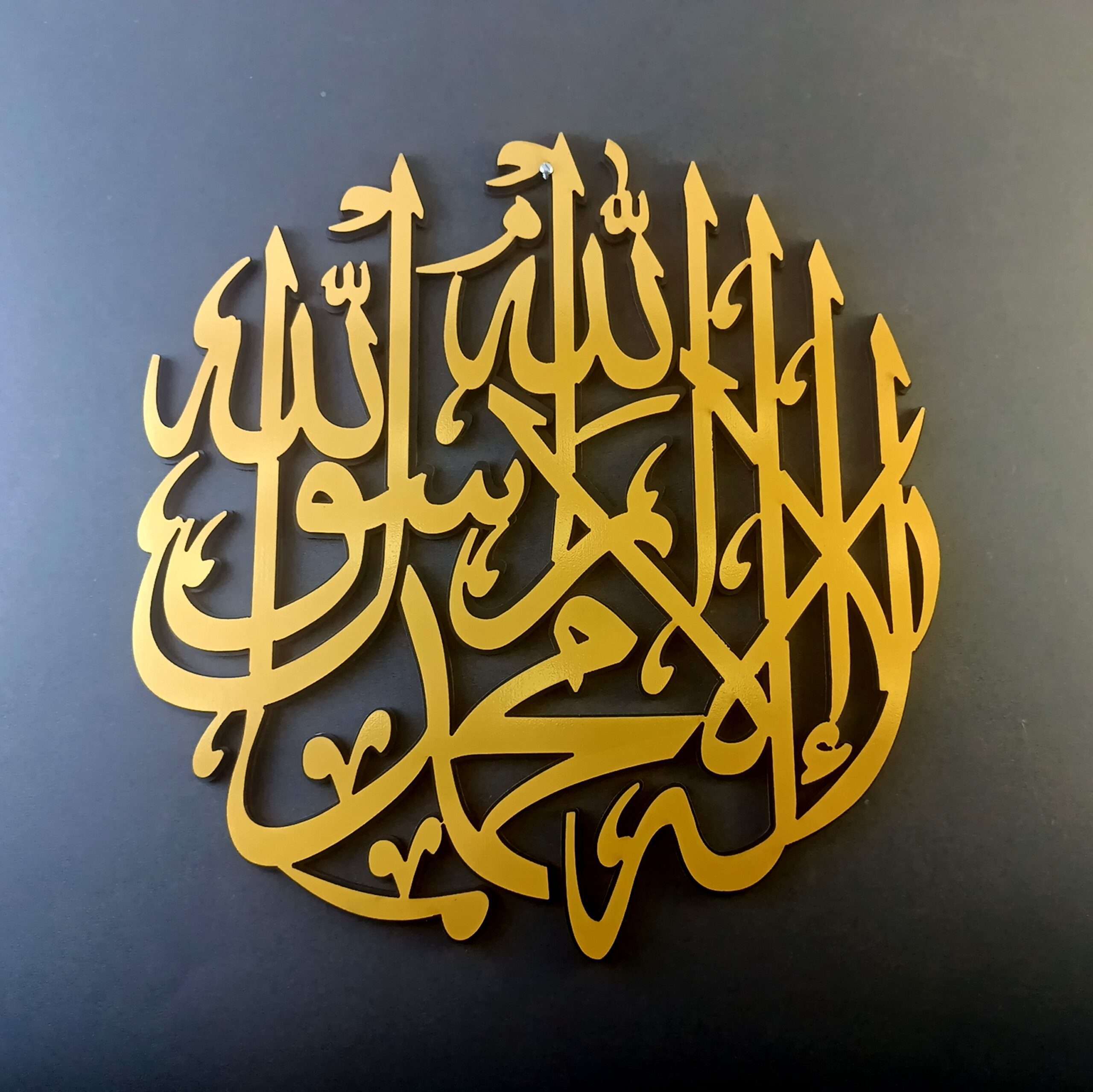 having holy name of allah and mohammed rasulallah cut with acrylic.