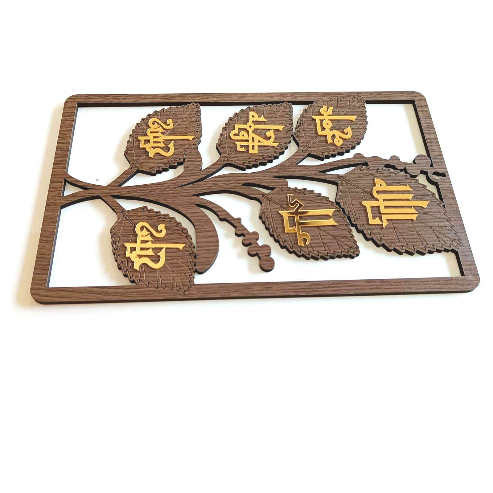 This frames for perfect wall decoration this beautiful product is made of wooden mdf having holy name of allah muhammad ali fatema hasan husain laser cut process. best gift for hajj umrah and karbala return best hadiya for mohrram niyaz mumineen